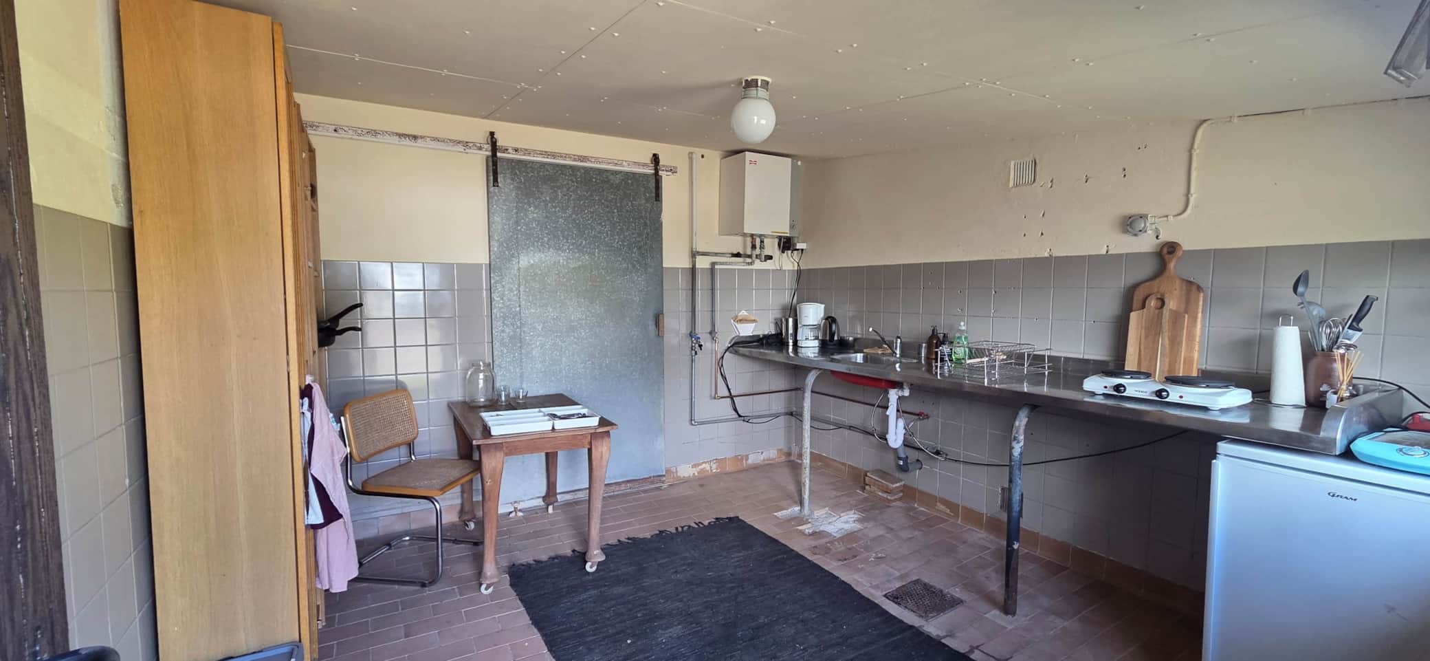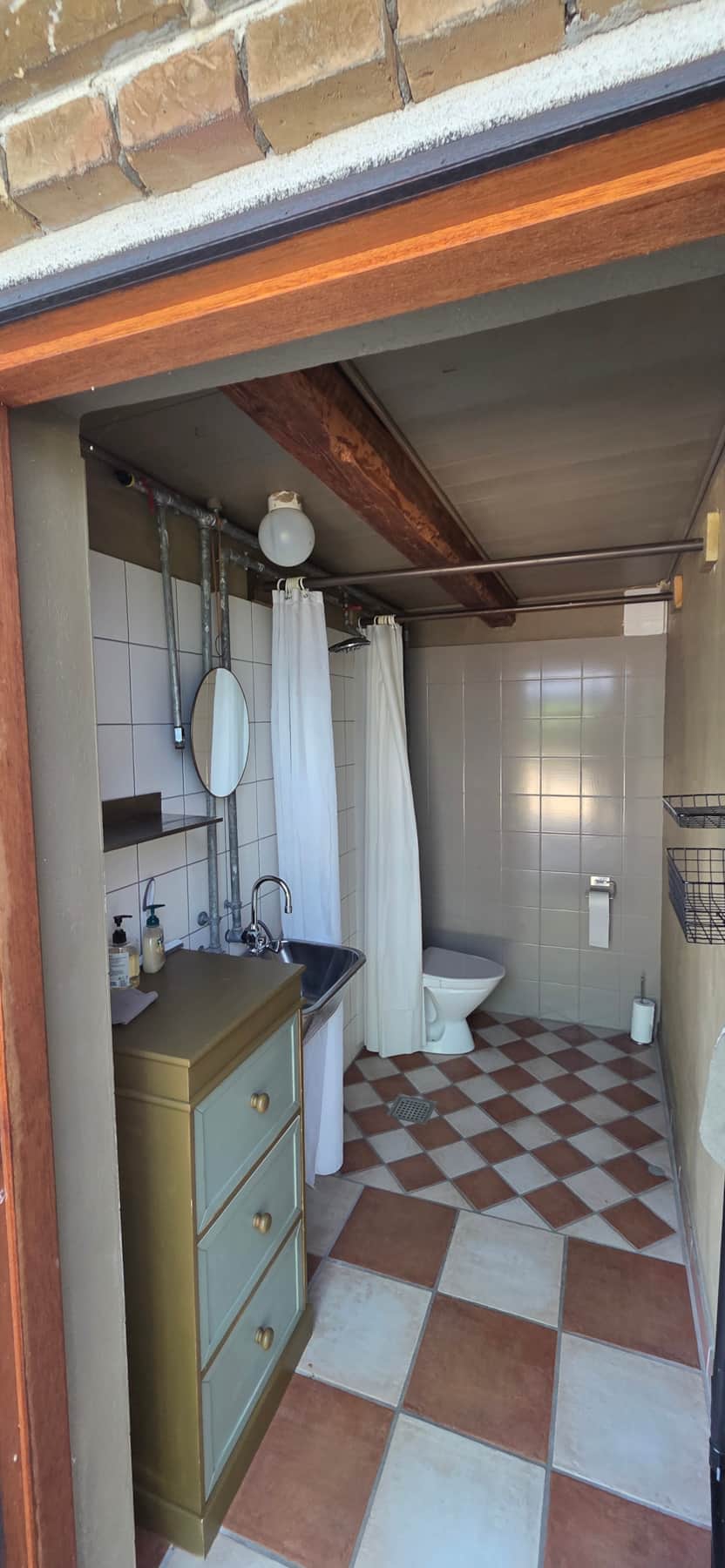 The camping spots are "back to basic" as the original camping is intended, without electricity / water etc. at the spot. There is a well-maintained common area with a shower and a toilet and there is also a washing machine that can be used. There is also a shared kitchen with a hob and fridge, but the kitchen is also equipped with a coffee machine (with coffee) and a kettle.